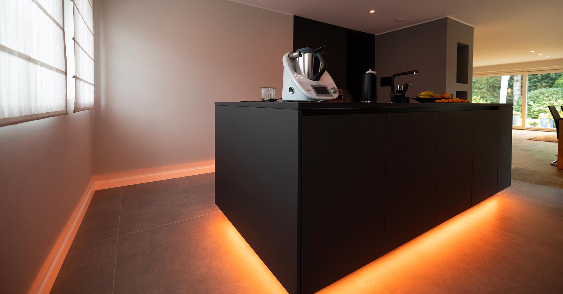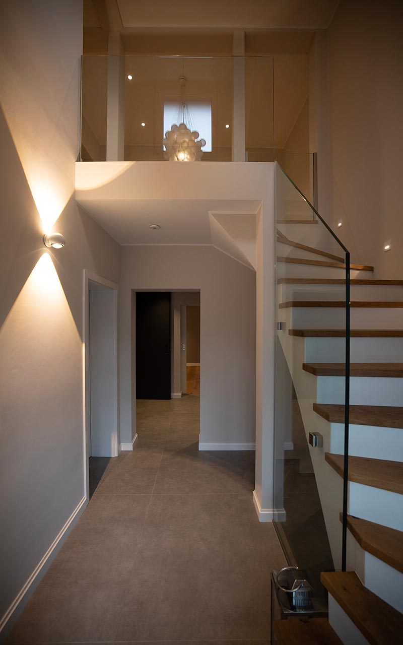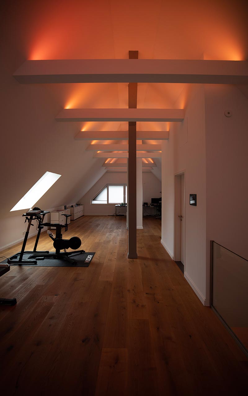 Installation und Integration von einigen Dali-Leuchten. 70 Loxone Tree-RGBW Spots, Ein/Aus Lichtquellen und LED Streifen ergänzen das Lichtkonzept im gesamten Haus. Die meisten Lichtquellen sind dimmbar und teilweise in der Farbe veränderbar. So entsteht für jede Situation die optimale Lichtstimmung.